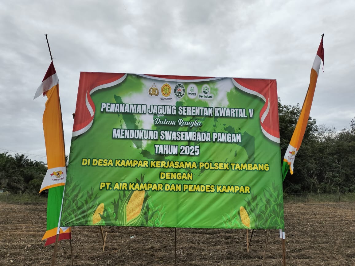 KAMPAR – PT. Air Kampar Group (PT. AKG) bersama Polsek Tambang beserta Pemerintah Desa Kampar melaksanakan kegiatan Penanaman Jagung bibit pipil kwartal V di Desa Kampar mendukung program Ketahanan Pangan Nasional Bapak Presiden Prabowo.